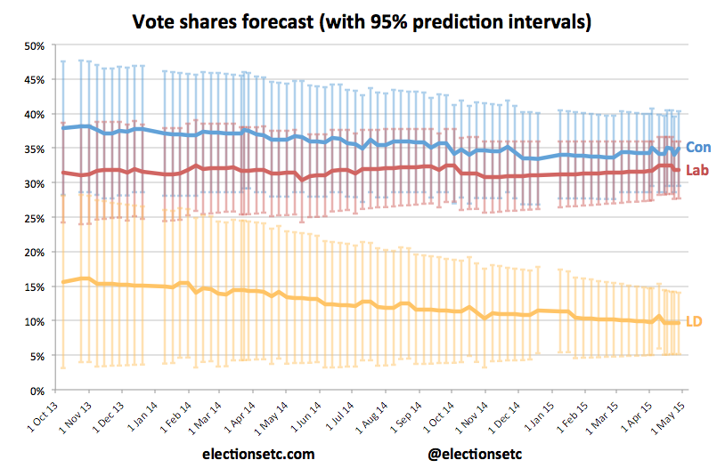 Forecast GB Vote Shares (with 95% Prediction Intervals)