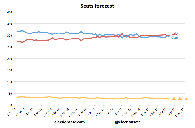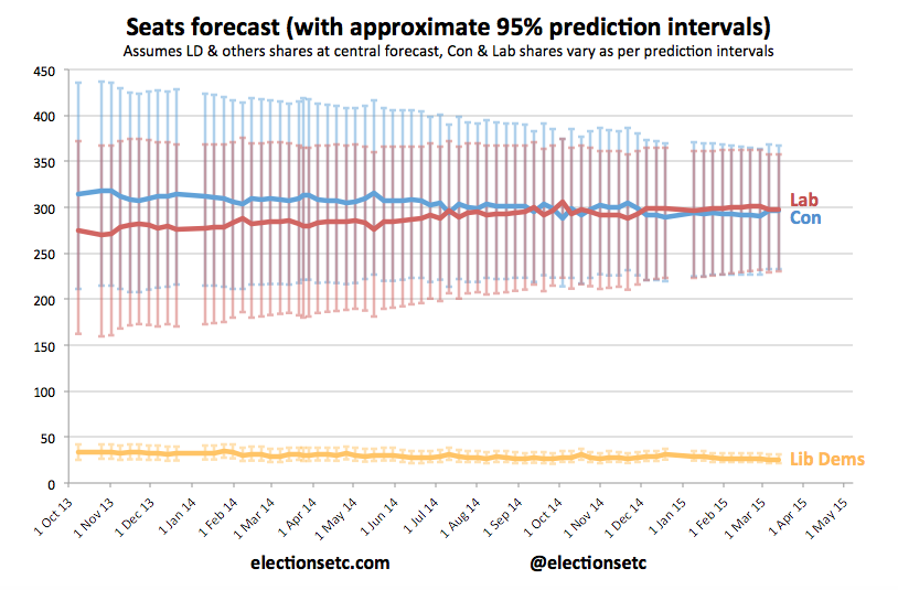 (Prediction intervals assume LD & others shares at central forecast, Con & Lab shares vary as per prediction intervals)